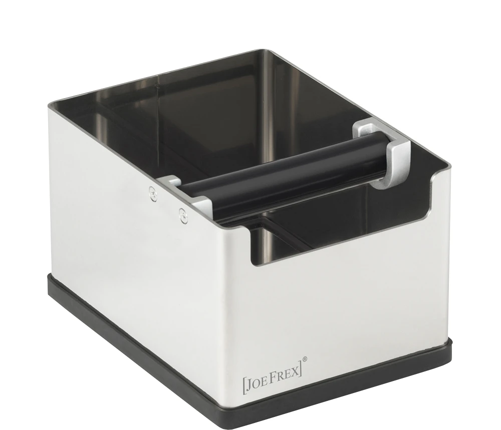 Diese Abschlagbehälter aus Edelstahl sind hervorragend geräuschgedämpft durch den silikonummantelten Metallstab und die extrem rutschfeste Gummiauflage. Das professionelle Design passt ideal zu den meisten Kaffeemaschinen und Mühlen.