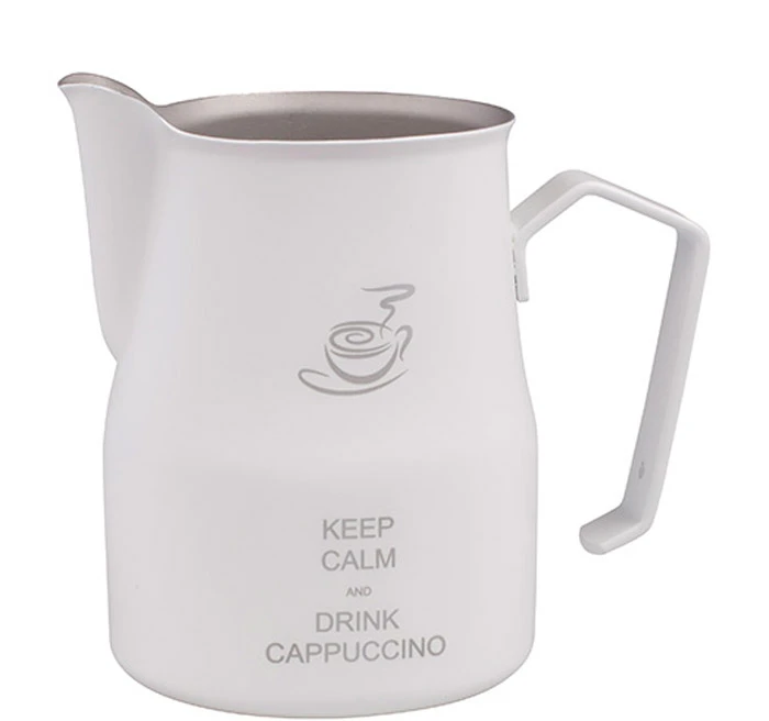 Der Aufschäumbecher von Motta liegt fantastisch in der Hand. Die schwere Ausführung und der große Griff geben Sicherheit beim Gebrauch. Die Innenseite der Kanne ist teflonbeschichtet und die Außenseite strahlt in einem schönen weiß. Auf der Vorderseite befindet sich eine Gravur mit dem berühmten „Keep calm“ Motiv. Perfekt für alle Kaffeeliebhaber, die viel Wert auf einen entspannten Espressogenuss legen. Die aufgeschäumte Milch in der Kanne reicht für ca. 2-3 Cappuccinos. Schon gewusst? Die Europa-Milchkanne von Motta gehört zur Standardausrüstung von den meisten Baristi bei den internationalen „Barista Championships“.