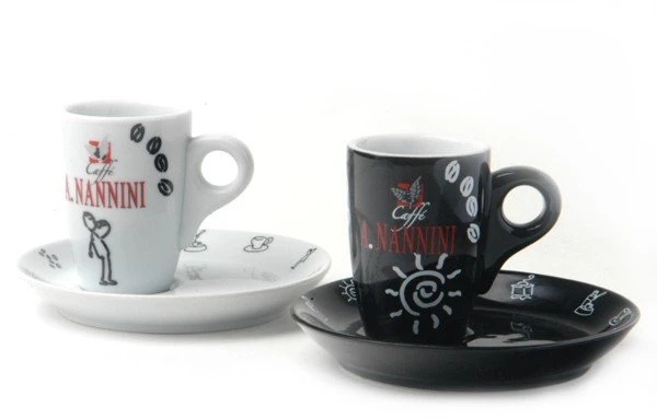 2 Espresso Tassen mit Unterteller von Nannini schwarz und weiß