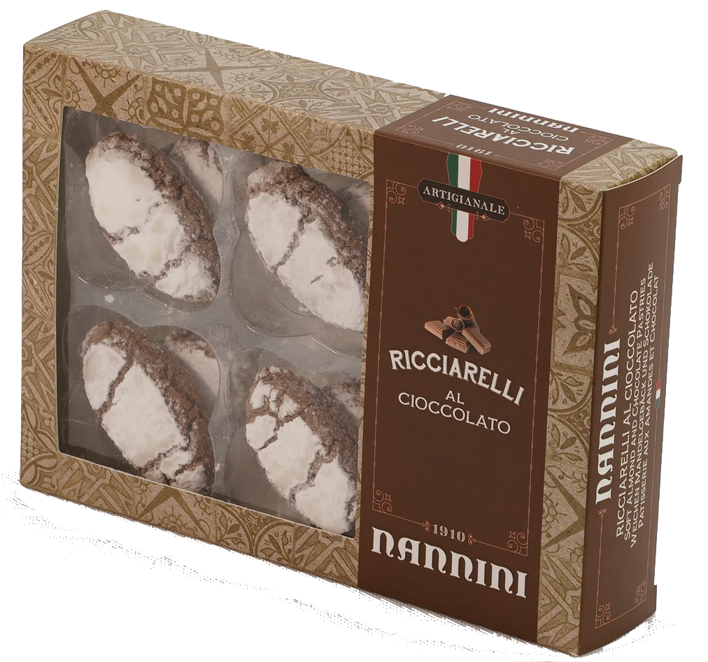 Ricciarelli sind ein köstliches italienisches Gebäck mit Mandeln und Schokolade. Unbeschreiblich frisch, locker und köstlich nur von Nannini.